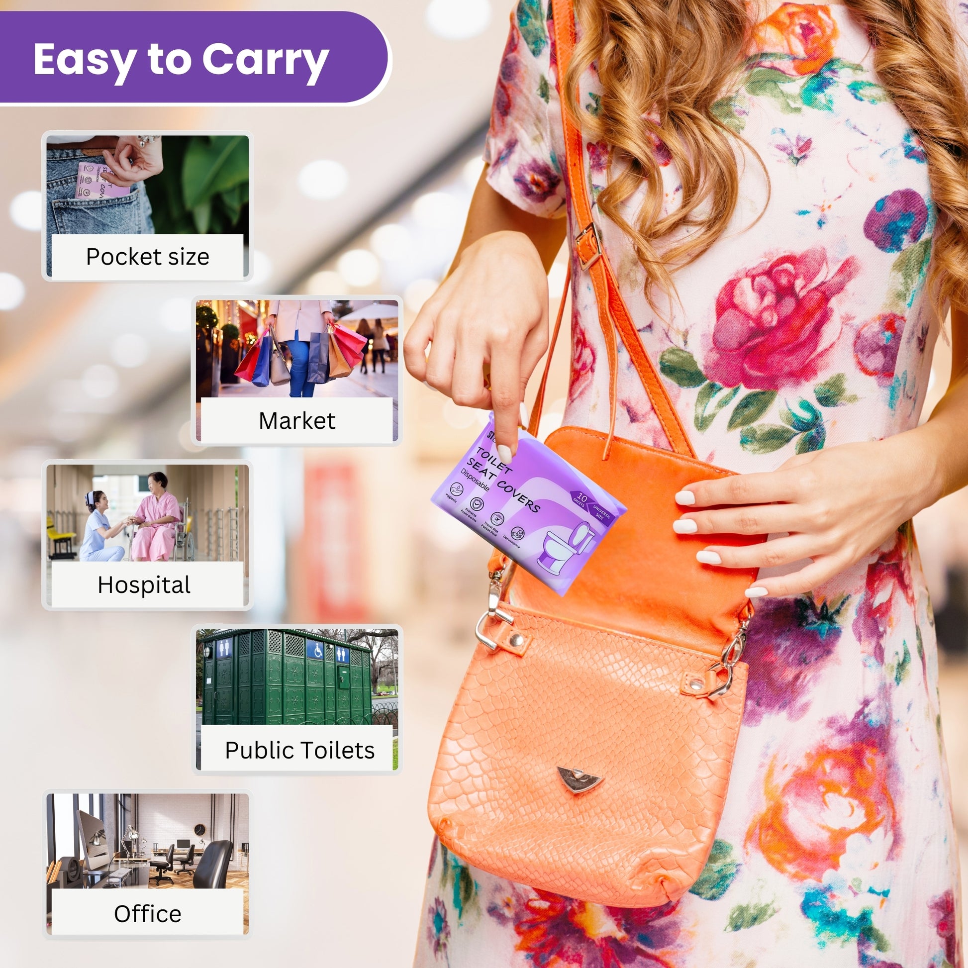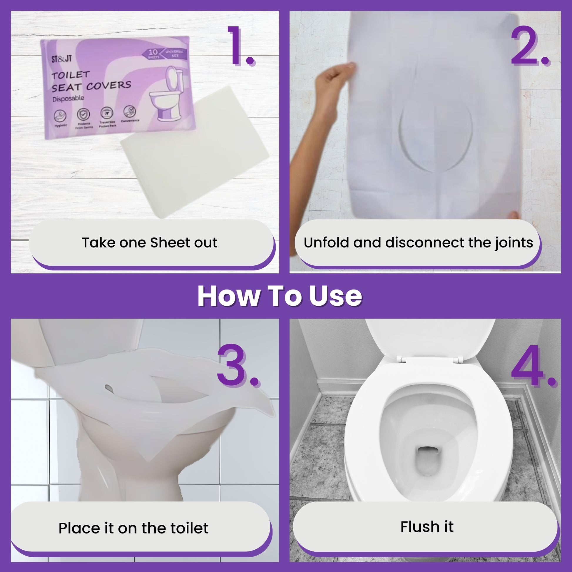 - ✔️ NO MORE STRESS when you need to use a public restroom. Our Flushable Toilet Seat Covers will come in handy when needing to use a public restroom. Our seat covers are essential for safety and peace of mind.